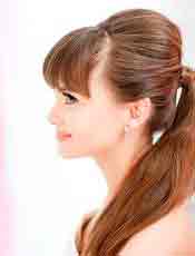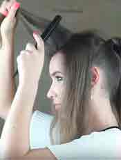 Создание прически «Высокий хвост с начесом и челкой»