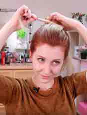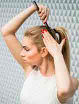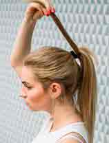 - Отделяет от собранного хвоста из волос достаточно толстую прядку.