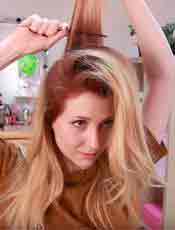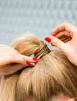 - Обязательно закрепите волосы с помощью резиночки.