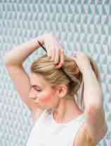 Шаг 2. При помощи пальцев соберите волосы в хвост на затылке или чуть ниже. Закрепите резинкой.
