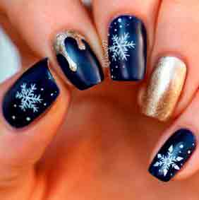 Вы можете сделать новогодний маникюр со снежинками, используя темную основу, украсить снежинками новогодний френч, использовать снежинки в качестве основного или дополнительного декора.