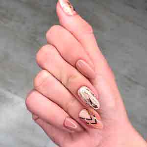- Учитывайте длину и форму пластинок, выбирая дизайн. Для длинных ногтей подойдут крупные объемные элементы (например, лепка акрилом), все варианты французского маникюра с рисунком, лунный маникюр. Для коротких пластинок предпочтительнее вязанный, кружевной узор, продольные линии, а также дизайн с блестками.