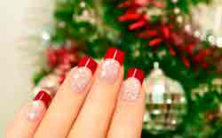 Новогодний маникюр можно подобрать под цвет платья, можно сделать яркий маникюр с рисунком новогодней тематики, если вы делаете новогодний маникюр гель лаком, учитывайте, что продержится он больше 2 недель, поэтому лучше выбрать нейтральный новогодний маникюр типа френча, приемлемый и для новогодней вечеринки и повседневной носки.