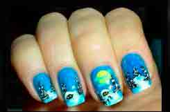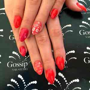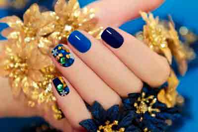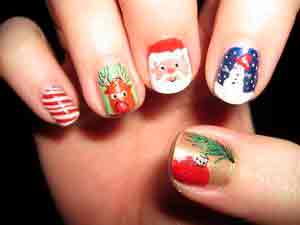 «По-прежнему в моде контрастные узоры, снежинки, снеговики, олени, елки, милые зверьки, сказочные персонажи и Санта-Клаусы. Если у вас есть способности к живописи, вы легко украсите ногти самостоятельно, но не рисуйте лаком — лучше используйте акриловые краски, которые идеально подходят для сложных узоров. Даже при отсутствии художественных наклонностей вы легко украсите ногти, используя трафареты из клейкой бумаги. В тренде новогодней ночи 2017 года — желтый, красный, зеленый, оранжевый, золотистый и синий цвета, ведь Петух любит броские и сочные оттенки. Самые модные рисунки для дизайна ногтей — снеговик Олоф из мультфильма „Холодное сердце“ и разноцветные перья Петуха. Однако совсем необязательно отправляться в салон красоты для новогоднего маникюра, сейчас продаются интересные лаки, имитирующие ткань, ворс, драгоценные камни, глиттеры, блестки и сверкающая пудра. Из пластичного акрила мастер может слепить скульптурные декоративные украшения для ногтей или оформить маникюр блестящими лентами из скотча. Можно декорировать ногти эффектными наклейками, штампами, стразами, маленькими шариками (бульонками), фольгой, декоративным песком и голографическими светоотражающими пайетками. Наклейки с гномиками, феями, эльфами, зимними пейзажами и морозными узорами на стекле создают уютное зимнее настроение, благодаря которому так легко поверить в чудо».