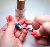 - Для новогоднего маникюра запилите ногти мягкой пилочкой с минимальной абразивностью. Придайте ногтям форму и обезжирьте поверхность ногтей специальным препаратом.