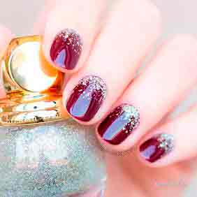 Новогодний маникюр – не исключение. Мастера предлагают делать новогодний маникюр с градиентом в насыщенных и броских оттенках красного, бордо, марсала, синего, зеленого и т.п.