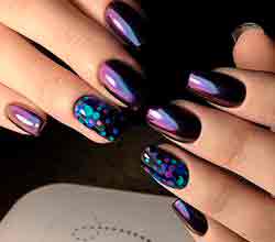 Такое необычное покрытие – самое то для новогоднего дизайна, ведь смотрится подобный новогодний маникюр весьма эффектно и празднично.