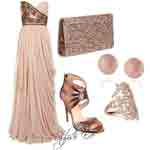 Если платье не имеет ярких акцентов, которые могли бы перекликаться по цвету с обувью, то лучшими сочетаниями станут оттенки коричневого, золотистого или нежно фиолетового цвета. Так же хорошо будет выглядеть сочетание бежевого с металлическим блеском, в связи с чем обувь можно подобрать цвета «Металлик» или «Графит».