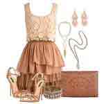 Гармония шоколадного и бежевого, считается одним из превосходных совмещений, создающие поистине классический образ женственности. Наряд, имея тёплый оттенок хорош для повседневной носки.