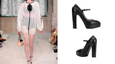 А вот черные туфли на танкетке будут хорошо смотреться только в комплекте с расклешенными платьями. Модели облегающего силуэта с такой обувью не сочетаются. К белому платью силуэта трапеция в стиле семидесятых стоит приобрести черные туфли на платформе и широком каблуке, причем платформа и каблук должны быть белого цвета.