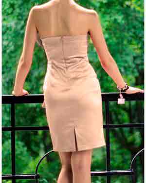 • Шёлковое бежевое платье – это невероятно элегантно и женственно. Такая ткань в сочетании с этим цветом волнует сердца и умы мужчин, заставляя их фантазировать, глядя на всё это великолепие.