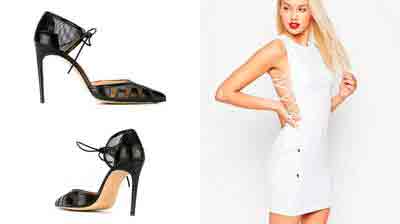 Короткое белое платье в сочетании с черными туфлям будет смотреться роскошно, если правильно подобрать фасоны и расставить акценты. Универсальным выбором обуви станут черные лодочки на шпильке, они подойдут к платью практически любого покроя.