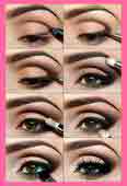 Для основы мейк-апа лучше применить постельные оттенки, не экспериментируя с яркими, спокойные цвета теней используемых для век, подводка и тушь каштановой гаммы. Для достижения мягкости взгляда можно использовать тушь серого коричневого оттенка с эффектом удлинения. Цветовую палитру и исполнение макияжа к платью можно рассмотреть на фото.